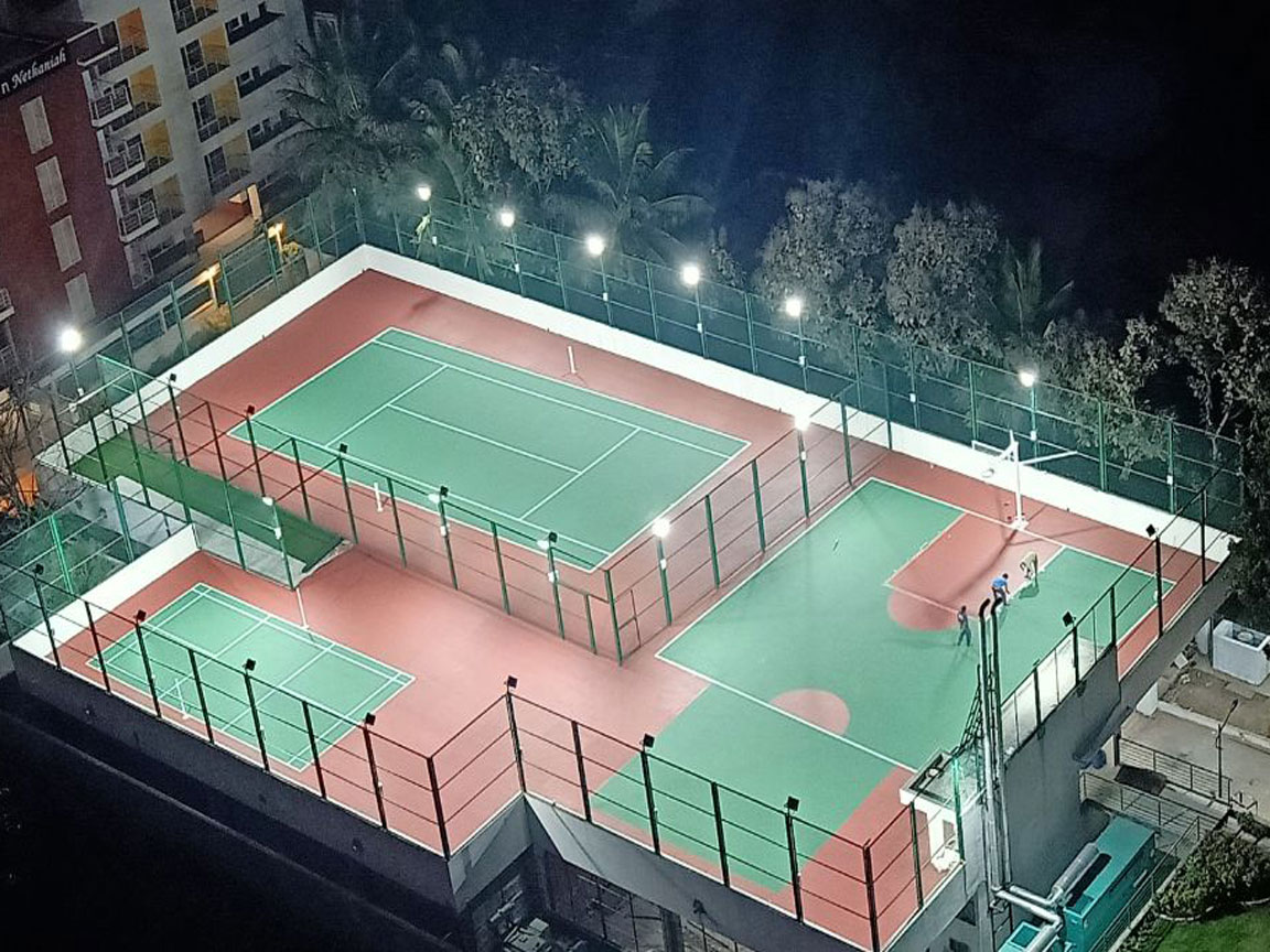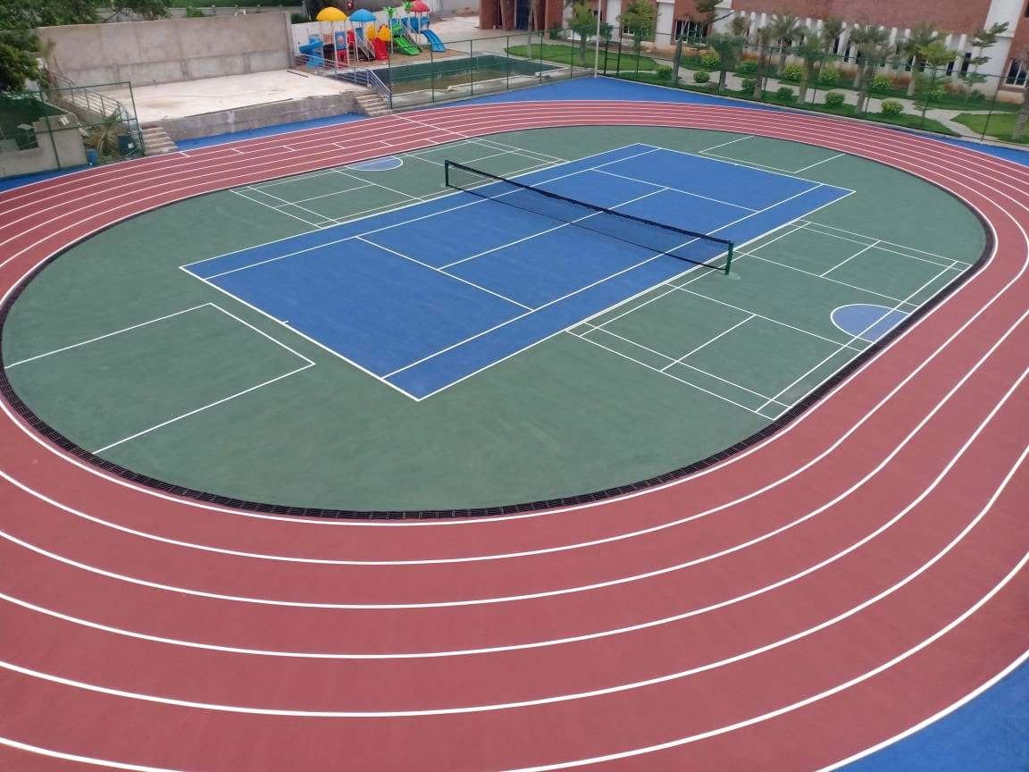 We are Equinox Sports Infra. A full-service, design, consultation and execution firm specializing in sports infrastructure. We are specialized in outdoor synthetic flooring, turf, outdoor play area construction, indoor vinyl flooring, and wooden flooring and undertake turnkey projects. Design, developing and construction of Basketball, Running tracks, Football, Cricket, Volleyball, Badminton, Squash and Tennis play areas.