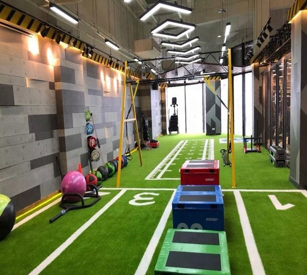 Equinox Sports Infra provides a choice of optimum HybridTurf synthetic grass surfaces for those high-action gym areas for resistance training in a burst of energetic colours.