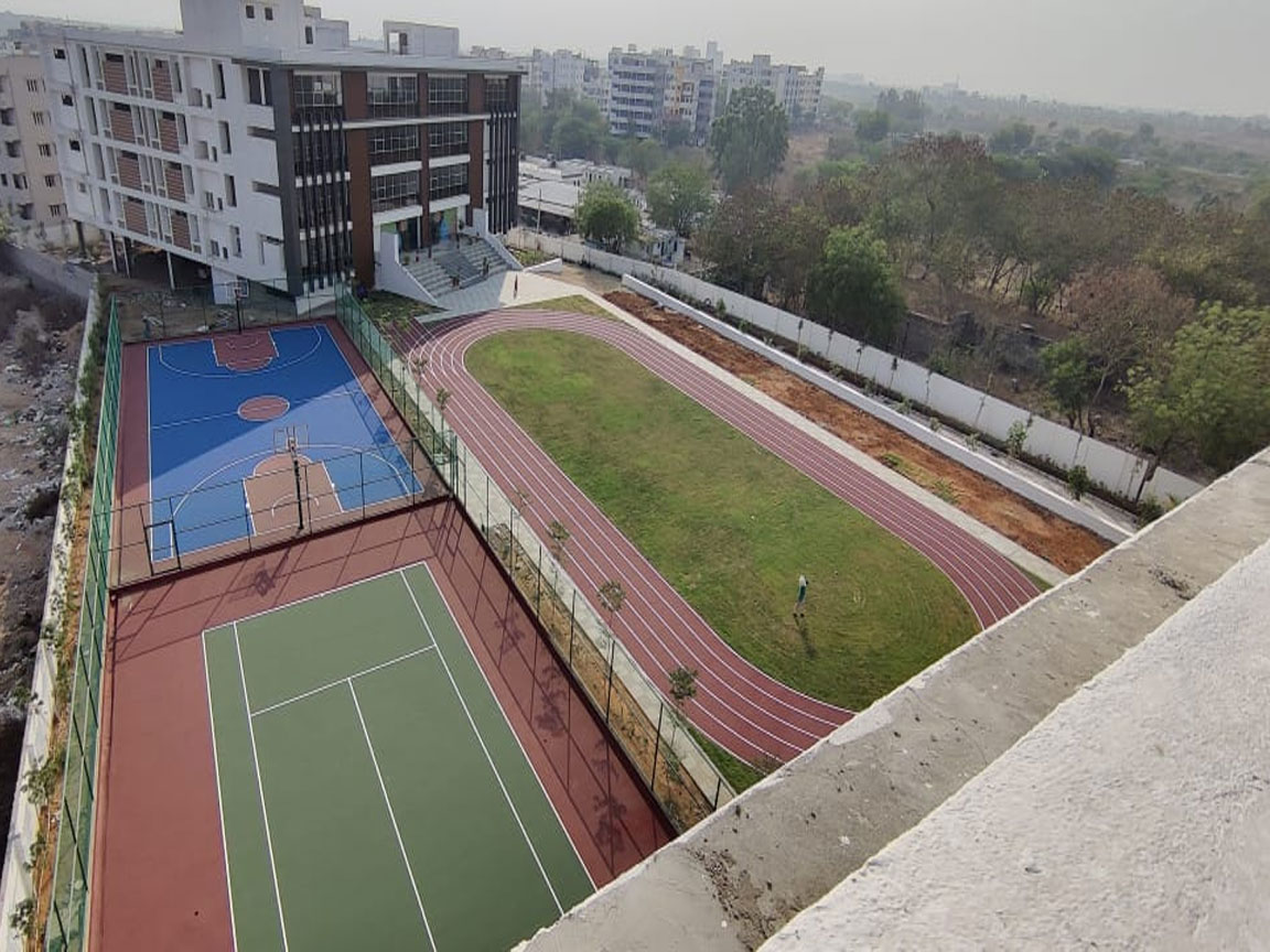 We are Equinox Sports Infra. A full-service, design, consultation and execution firm specializing in sports infrastructure. We are specialized in outdoor synthetic flooring, turf, outdoor play area construction, indoor vinyl flooring, and wooden flooring and undertake turnkey projects. Design, developing and construction of Basketball, Running tracks, Football, Cricket, Volleyball, Badminton, Squash and Tennis play areas.