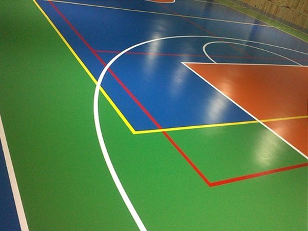 :- The construction of this type of sports surface involves mixing rubberised granules with a specifically formulated polyurethane binder on site and laying in site by the method of hand lay or machine lay. Once the flooring has fully cured anti-slip, non-skid polyurethane paint is applied to the flooring to give the flooring colour and skid resistance. This specification is very popular for schools and clubs who are looking to complete a court upgrade by installing a surface with better playing qualities for different sports.